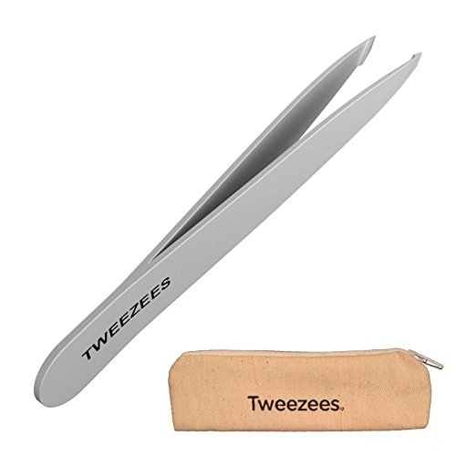 Professional Slant Tip Tweezer - Tweezees Precision Stainless Steel Tweezers - Extra Sharp Hair Removal Tool - Best Tweezers for Eyebrow Shaping for Women and Men - Includes a Canvas Storage Bag!