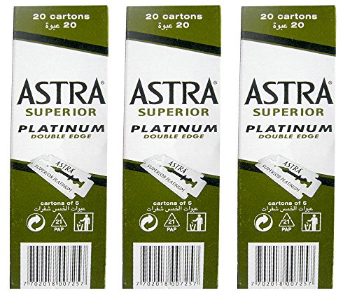 100 Astra Superior Premium Platinum Double Edge Safety Razor Blades 3-Count Pack
