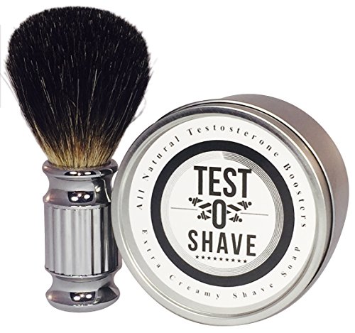 - TestOShave shave kit includes a chrome and real badger hair shaving brush along with a tin of Dr. Bryan's formulated TestOShave